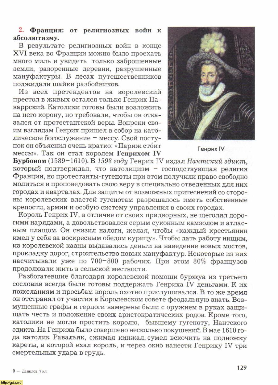 История за 7-ой класс - Д.Д. Данилов, А.В. Кузнецов. Всеобщая история. История Нового времени. 7-ой класс. Учебник.