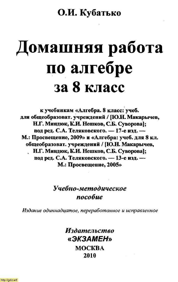 О.И. Кубатько Домашняя работа по алгебре 8 класс к учебнику Н.Ю. Макарычев Алгебра 8-ой класс