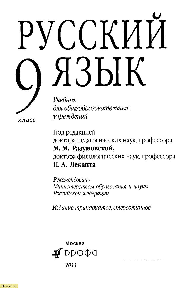 М.М. Разумовская Русский язык 9 класс Русский язык 9-ый класс