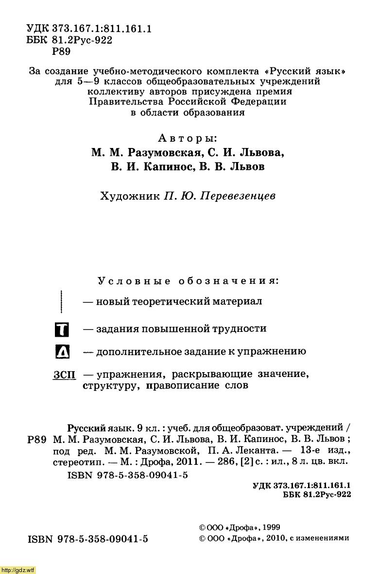 М.М. Разумовская Русский язык 9 класс Русский язык 9-ый класс